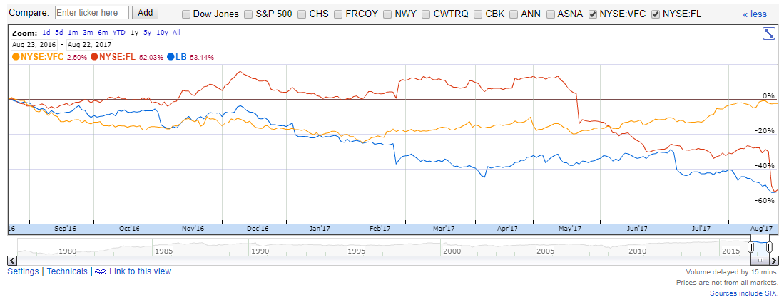奇遇にも1年間のリターンはフットロッカーとだいたい同じです(笑)