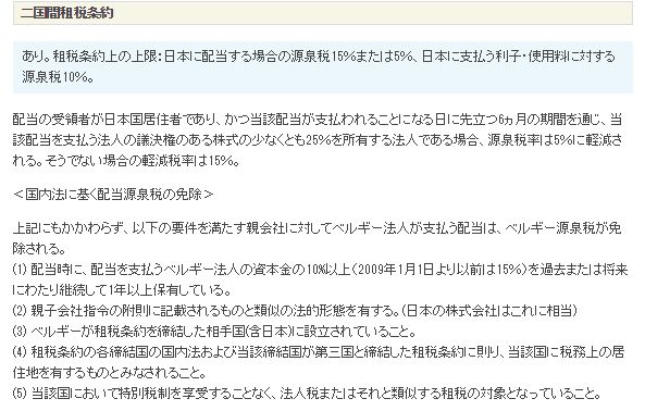 「ベルギー 配当 源泉」で検索したらジェトロのHPが出てきたので参考にしてみました。