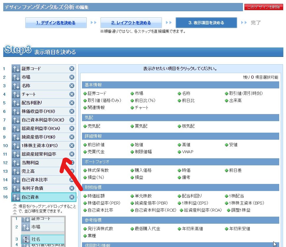 左側欄は、左の↑↓をドラッグしながら項目を上下に移動することができます。