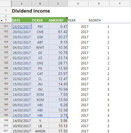 「Dividend income」シートに入力したデータがこちらに反映されます。