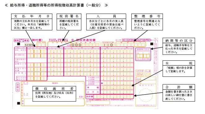 税務署に提出する源泉所得税の納付書は、給与を支払った人数と金額を書くので