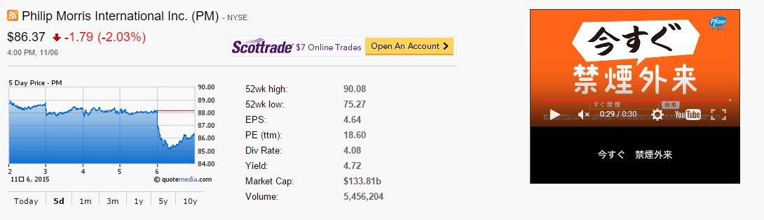 株価を調べようとサイト開いたら動画広告が「禁煙外来」で株主としては複雑すぎて笑いました。