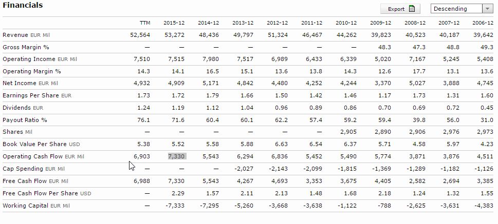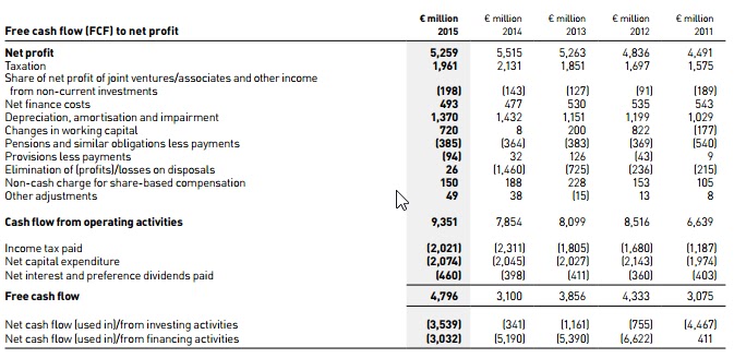 とりあえず、FCFは平均して30~40億ユーロ(33億~45億ドルぐらい?)あるとわかったので